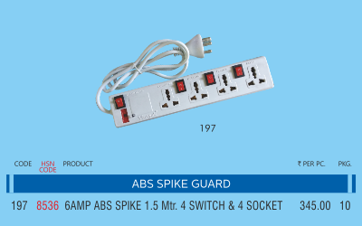 A spike guard, also known as a surge protector, is an essential electrical accessory that safeguards appliances from sudden voltage spikes, power surges, and electrical disturbances. High-quality spike guards help extend appliance life and prevent costly electrical damage.